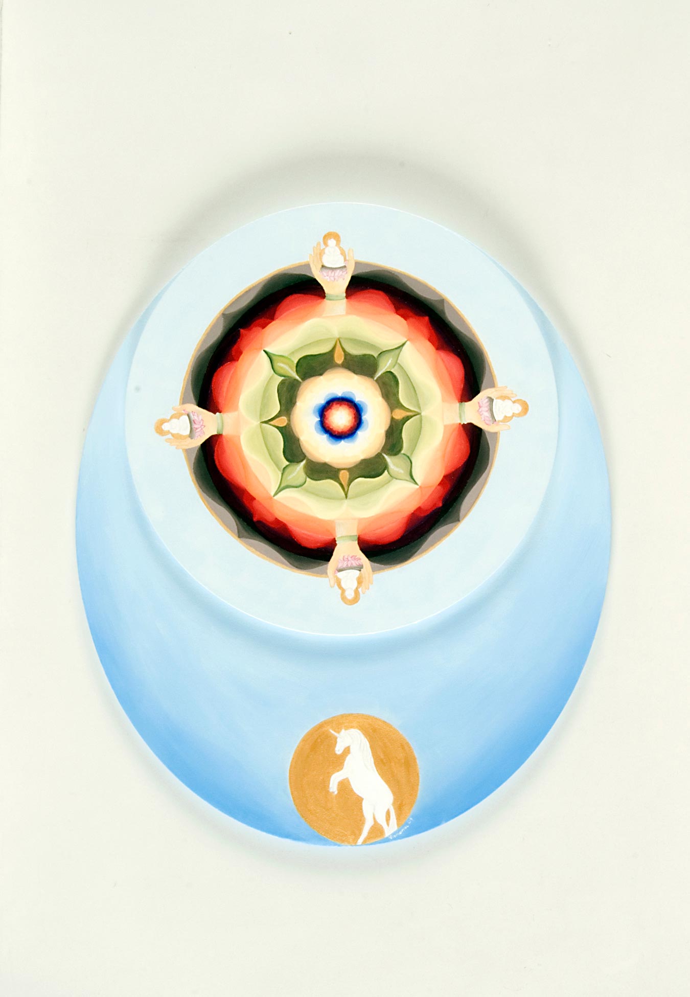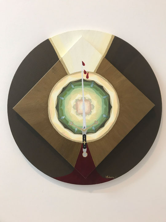 The paintings release energy according to how the viewer concentrates on the paintings and contemplates the ideas they inspire.